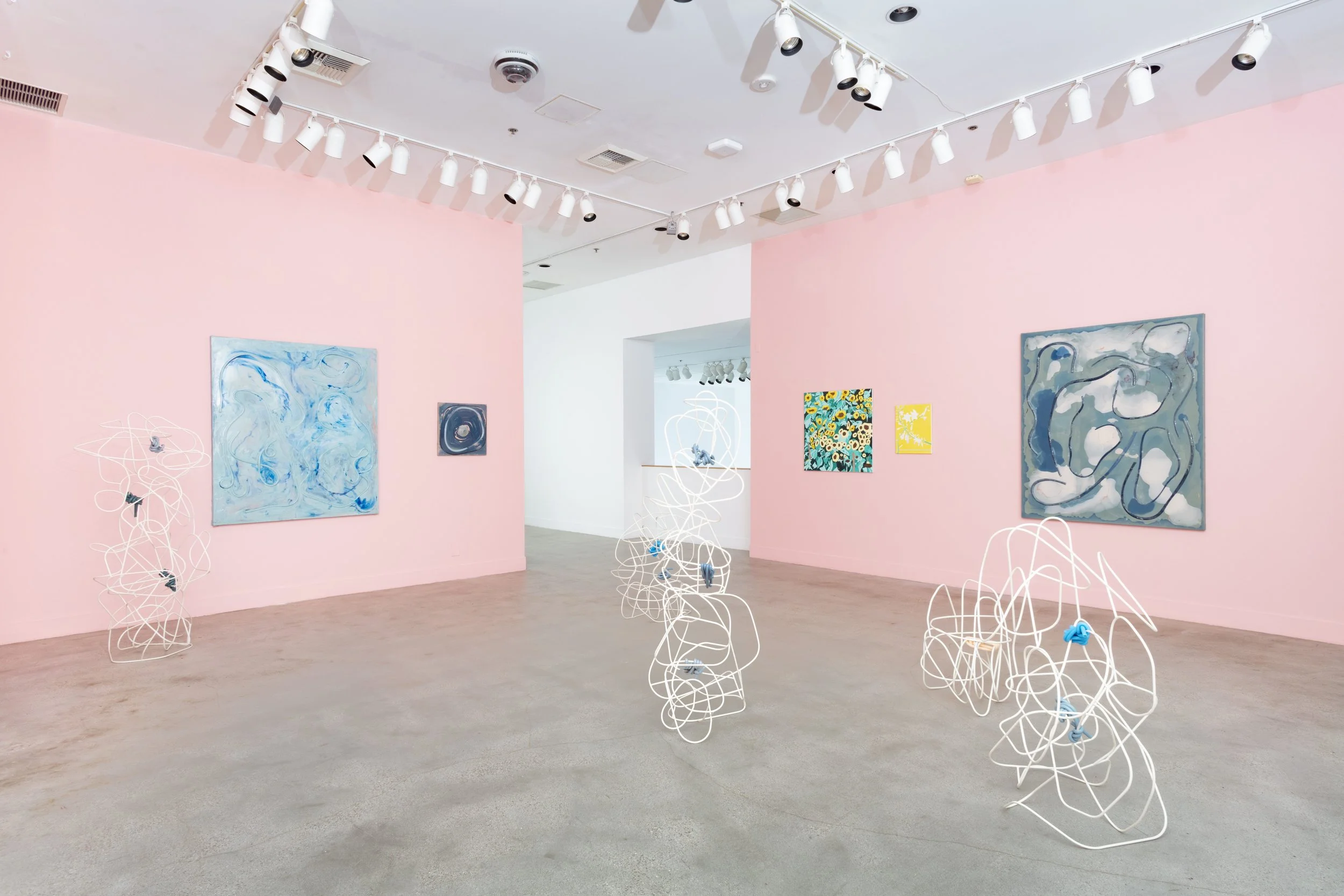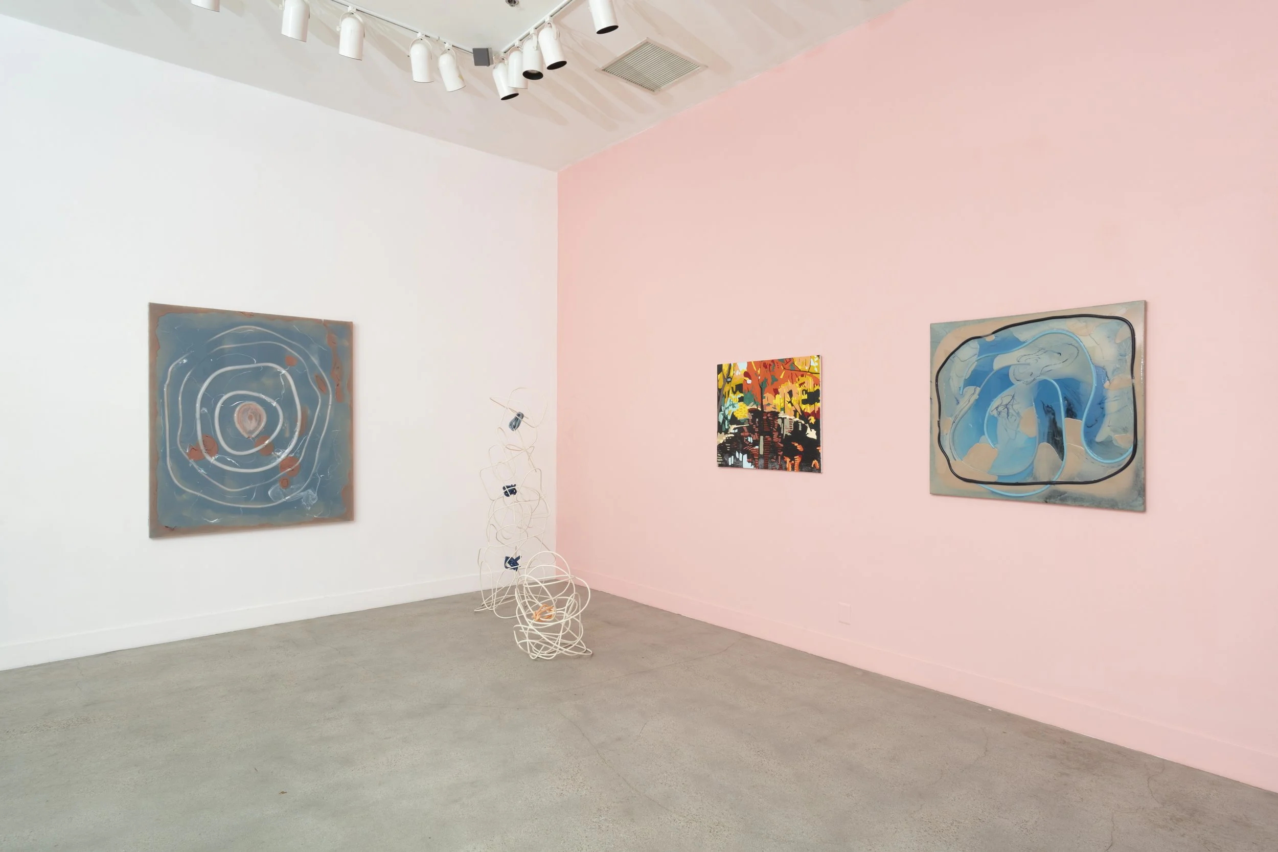Over the last decade, Isabel Yellin has earned a reputation for fabric sculptures sewn into serpentine shapes suggestive of the body. The works in Mothership, her debut solo museum exhibition, mark a material turn in her practice, presenting restless silicone paintings and metal-and-silicone sculptures that oscillate between divergent tendencies: hard and soft, tight and loose, wall and floor, freedom and containment. Rooted in the language of abstraction, these works continue to summon the corporeal, but also expand to suggest the ethereal, creating a visual language for Yellin’s investigation into the psyche.